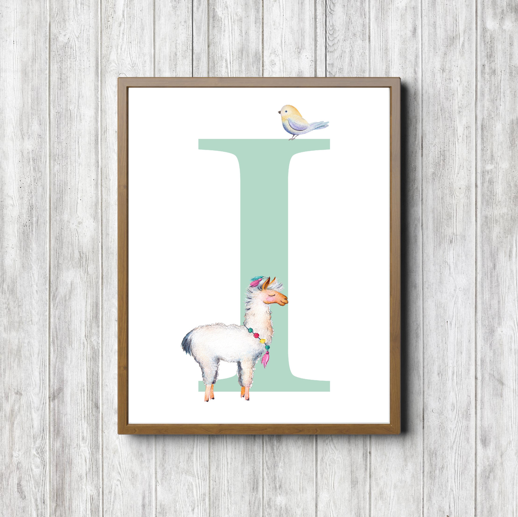 ‘Letter I – Llama & Bird’ is an instant download, so you can print it at home or at a local print shop.