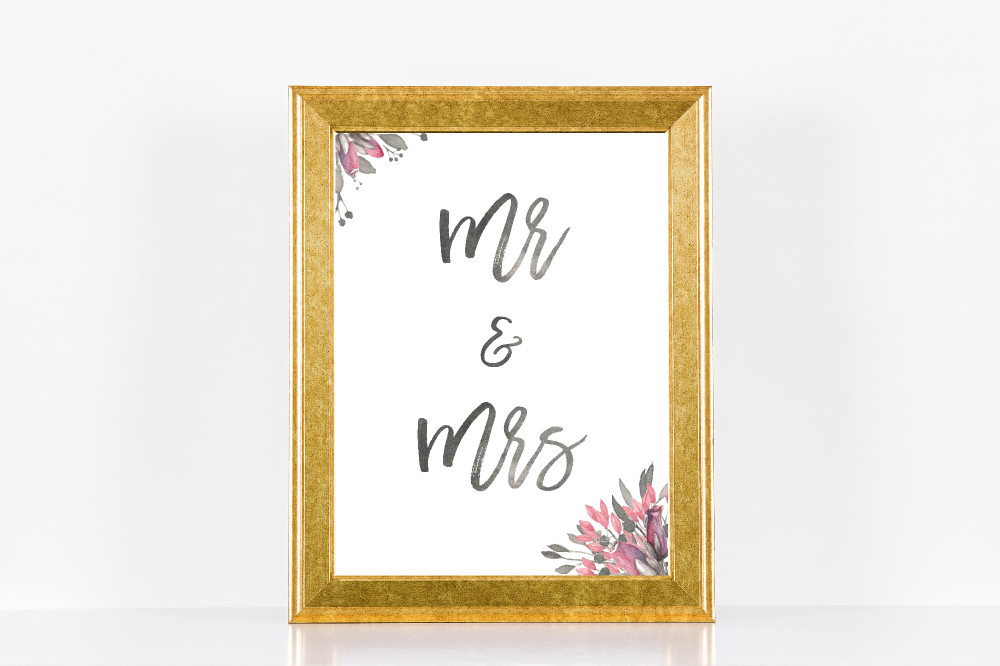 ‘Mr & Mrs Floral Wedding Sign’ is an instant download, so you can print it at home or at a local print shop.