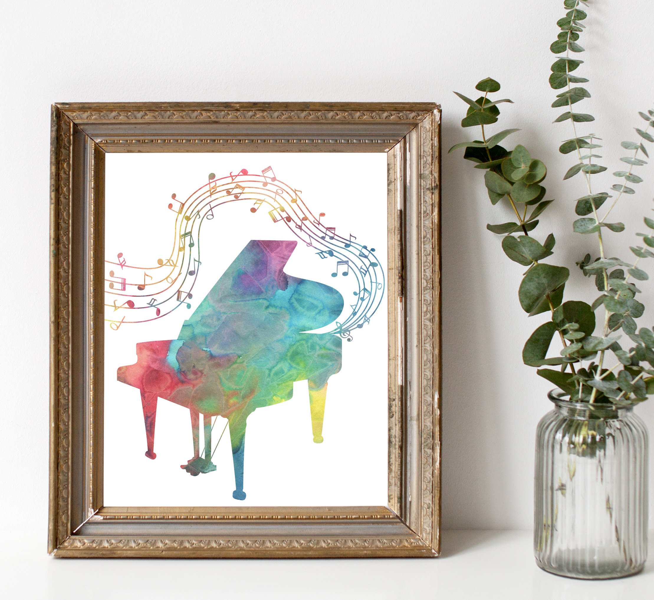 ‘Rainbow Watercolor Piano Printable’ is an instant download, so you can print it at home or at a local print shop.