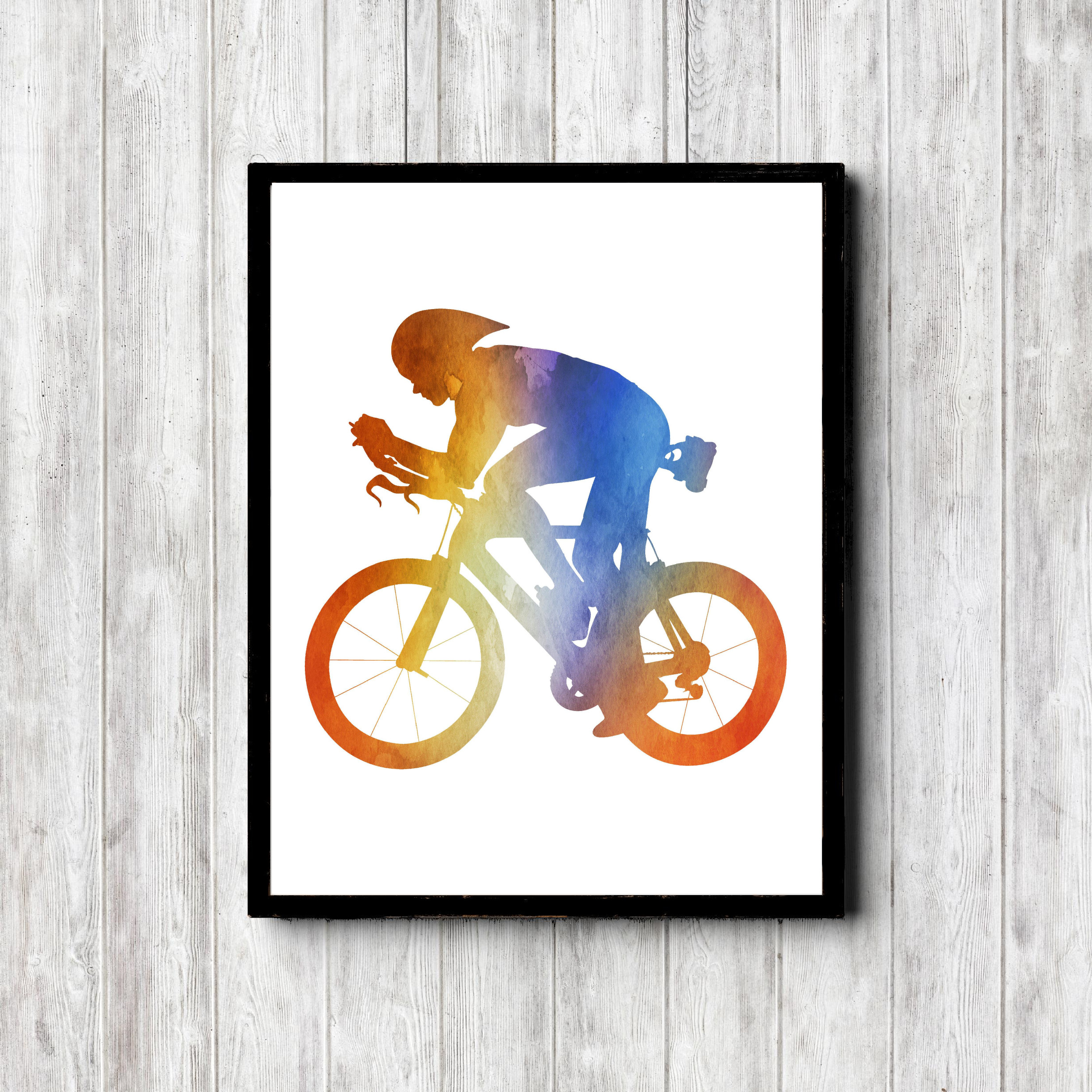 ‘Watercolor Cyclist Colorful Printable’ is an instant download, so you can print it at home or at a local print shop.